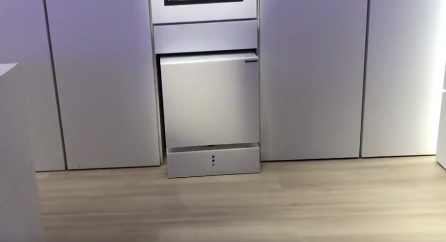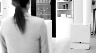 這并不是一個空想,日本商家創(chuàng)建的一款概念冰箱就是如此智能。它是現(xiàn)有智能冰箱的升級版,外表純白,四四方方,式樣小巧,能夠輕松進入櫥柜間隔中,甚至可以充當茶幾。