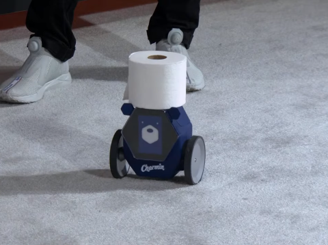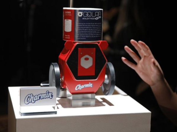 這是一個(gè)衛(wèi)生紙生產(chǎn)商在CES上提出的一系列基于技術(shù)的浴室解決方案。該公司推出的這款自平衡的機(jī)器人,它可以連接到用戶的手機(jī),并且可以幫助用戶化解無廁紙的尷尬情況,在他們最需要時(shí)提供新的卷紙。