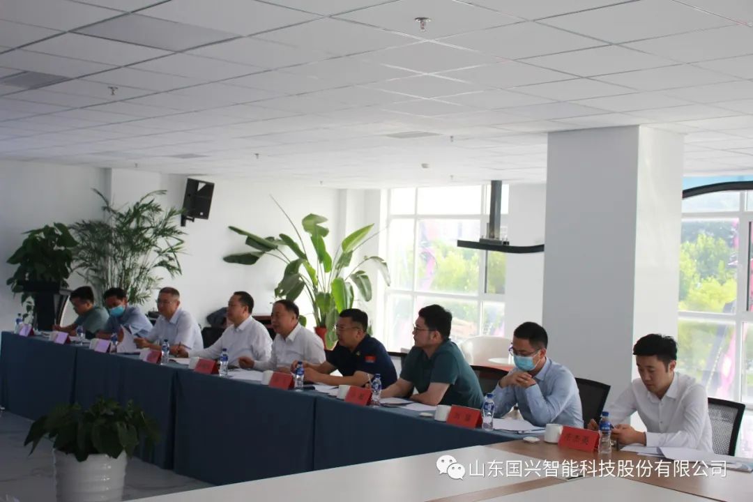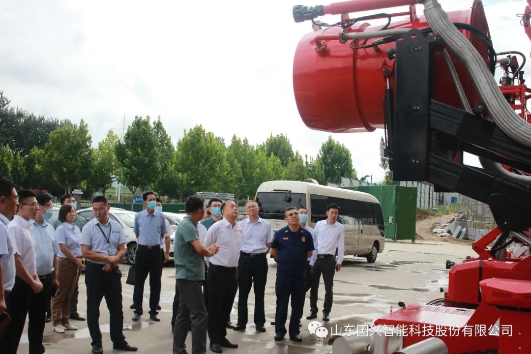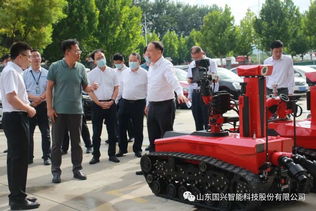 8月30日下午,煙臺市副市長韓耀東、煙臺市消防救援支隊政委李飛等在煙臺開發(fā)區(qū)管委會科技副主任陳軍陪同下到山東國興智能科技股份有限公司考察指導(dǎo)。