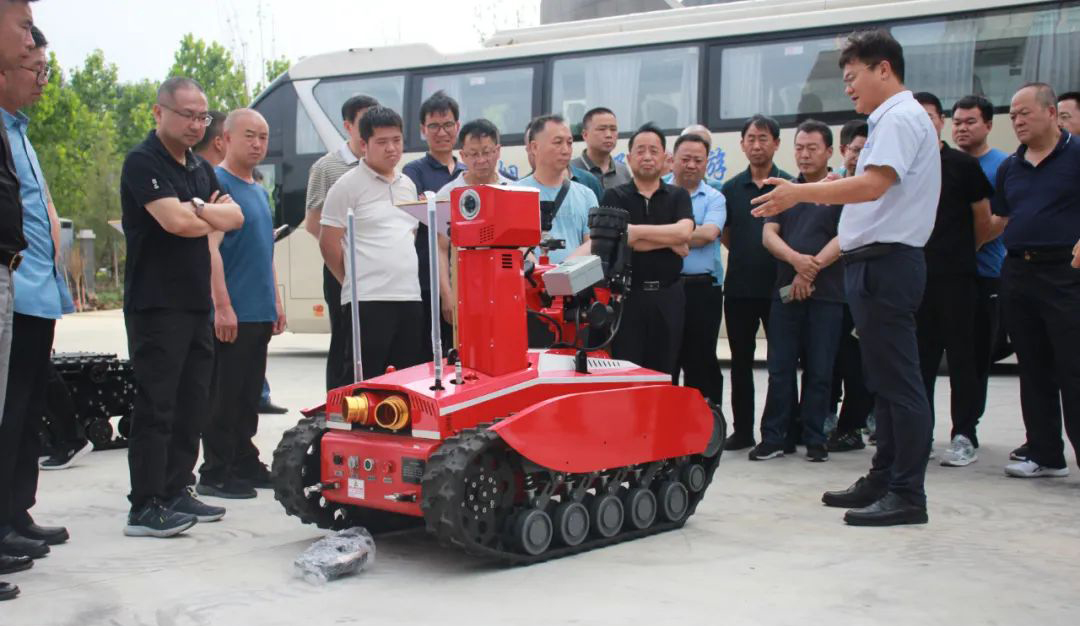 在國興智能鮑明松董事長陪同下,企業(yè)領導首先參觀了國興智能的礦用消防滅火偵察機器人、防爆消防滅火偵察機器人、輪式防爆巡檢機器人、四驅(qū)燃油消防滅火機器人、舉升排煙消防機器人等礦用消防機器人系列產(chǎn)品的展示,詳細了解了國興智能近年來在煤礦機器人領域產(chǎn)品創(chuàng)新、生產(chǎn)狀況、產(chǎn)品特點以及產(chǎn)品應用場景多元化建設等,得到到訪煤礦企業(yè)領導的一致好評。