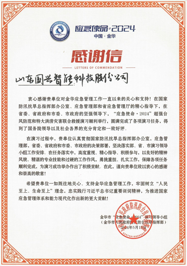 我們深知“人民至上、生命至上”的重要意義,將繼續(xù)秉持這一理念,忠實(shí)踐行國家應(yīng)急發(fā)展政策的重要指示精神。國興智能將一如既往地大力支持金華市的應(yīng)急管理工作,攜手共進(jìn),為國家應(yīng)急管理體系和能力現(xiàn)代化貢獻(xiàn)更大力量。