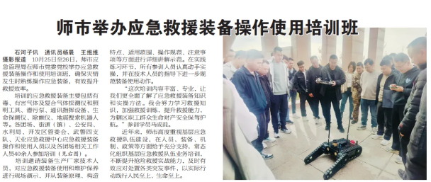 近日,國興智能“地震搜索機器人PS600”登上石河子日報,石河子是兵團應(yīng)急局八師駐地。此次批量交付,由國興智能專業(yè)交付團隊負責(zé),對裝備操作、使用及應(yīng)急處理進行了詳細說明。