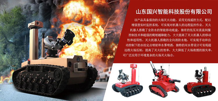 山東國興智能科技有限公司作為特種機器人行業(yè)優(yōu)秀的產(chǎn)品供應(yīng)商,長期致力于消防機器人及其底盤的定制研發(fā),并且在防爆滅火機器人和防爆偵察機器人產(chǎn)品研發(fā)方面取得國際領(lǐng)先的地位!